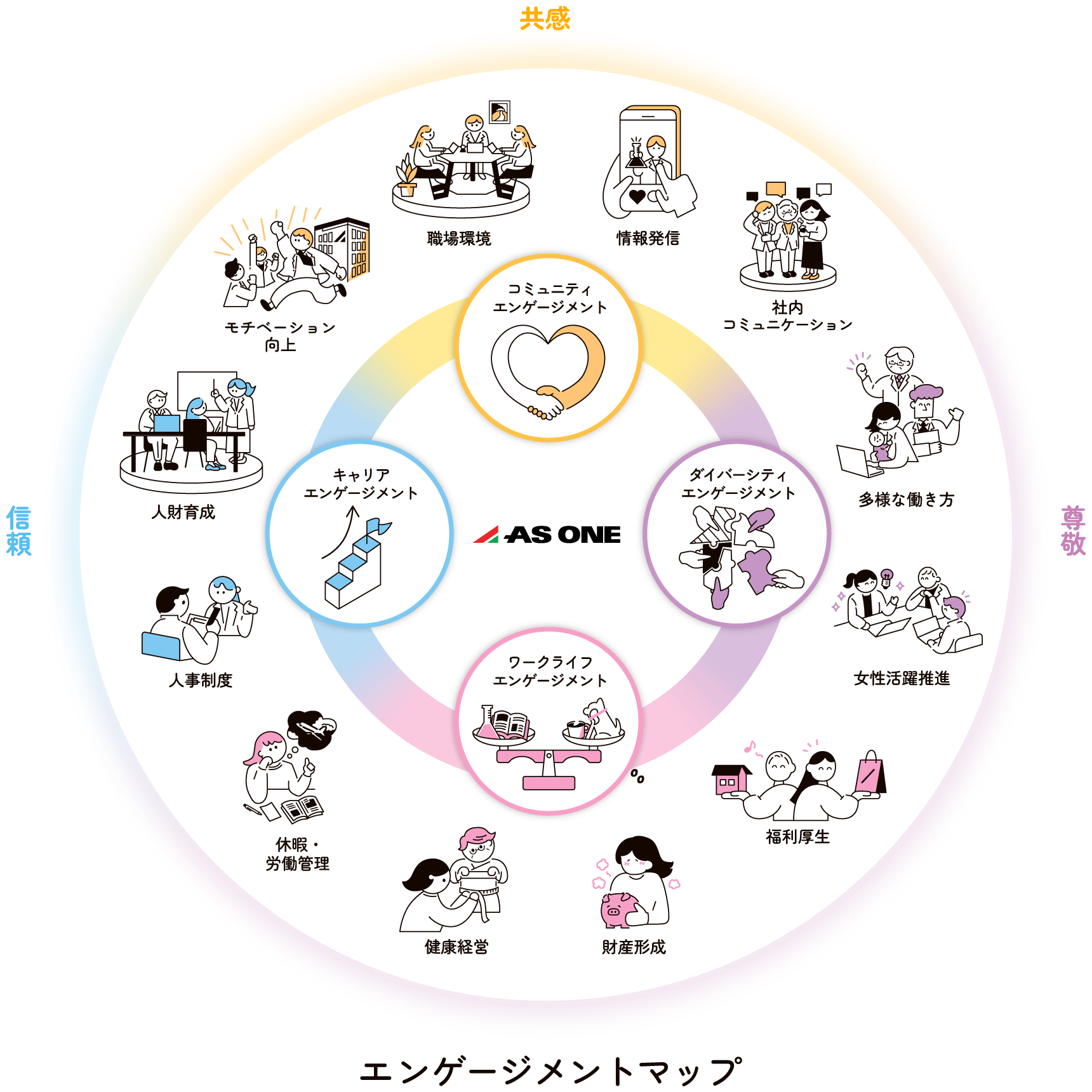 これらの枠組みに沿って制度を構築し、はたらく仲間のエンゲージメント向上に取り組んでいます。