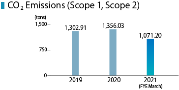 Our main business is wholesaling and we also developprivate brand products. However, we have adopted afabless business model that relies on outsourcedmanufacturing. We also outsource shipping operations.As such, CO2 emissions defined under Scope 1, Scope2 mainly involve the fuel used by company vehicles andelectricity consumed at each office.